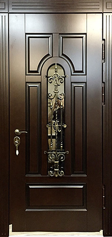 Входная дверь со стеклом и ковкой для загородного дома №16 создана для тех, кто ценит гармонию практичности и декоративного стиля. Каркас из профильной трубы и стальной лист толщиной 2 мм обеспечивают надежную защиту, а декоративная ковка со стеклянными вставками делает вход не только прочным, но и выразительным. Панели МДФ с ПВХ-покрытием используются с обеих сторон: они устойчивы к влаге и перепадам температуры, не теряют формы и сохраняют аккуратный вид на протяжении многих лет. Два контура уплотнения повышают комфорт, защищая дом от сквозняков, а при желании можно добавить дополнительную шумо- и теплоизоляцию. Входная дверь со стеклом и ковкой для загородного дома №16 легко адаптируется под размеры проема и может быть дополнена современными замками или другими декоративными элементами, чтобы подчеркнуть уникальность фасада. Входная дверь со стеклом и ковкой для загородного дома №16 от производителя: быстрое изготовление и монтаж в Ивантеевке, индивидуальные размеры, широкий выбор материалов и фурнитуры, официальная гарантия до 10 лет.
