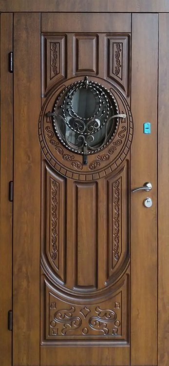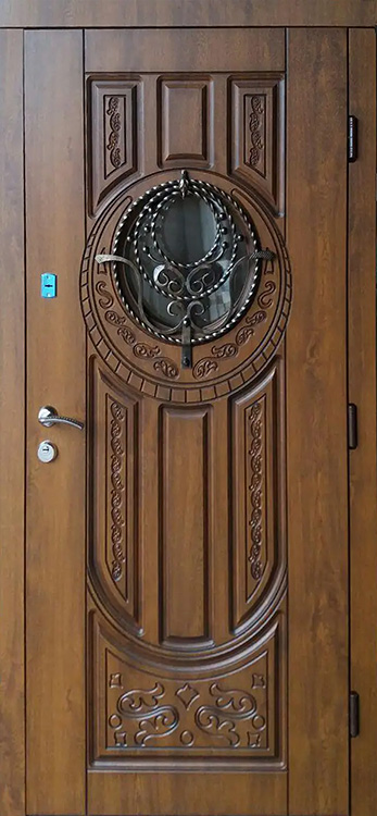Владельцы коттеджей ценят входные конструкции, которые одинаково подчеркивают статус и защищают от любых внешних факторов. Здесь удачно сочетаются прочный металл и массив дуба, придающий поверхности солидность и благородство. Натуральное дерево сохраняет цвет и текстуру долгие годы, устойчиво к механическим повреждениям и перепадам температуры. Внутри конструкции скрыт стальной каркас толщиной 1,5 мм с ребрами жесткости и противосъёмными блокираторами, что делает полотно практически неприступным. Особое преимущество — терморазрыв коробки и полотна, благодаря которому дверь не промерзает даже в сильные морозы и сохраняет тепло в доме. Именно на этом контрасте надежности и эстетики выделяется железная дверь со стеклом и ковкой №21, украшенная изящными декоративными элементами. Три контура магнитного уплотнения обеспечивают герметичность, а система замков Kale Kilit повышает уровень безопасности, при этом конструкция допускает установку современных умных решений и дополнительных декоративных опций. Железная дверь со стеклом и ковкой №21 от производителя: быстрое изготовление и монтаж в Ивантеевке, индивидуальные размеры, широкий выбор материалов и фурнитуры, официальная гарантия до 10 лет.