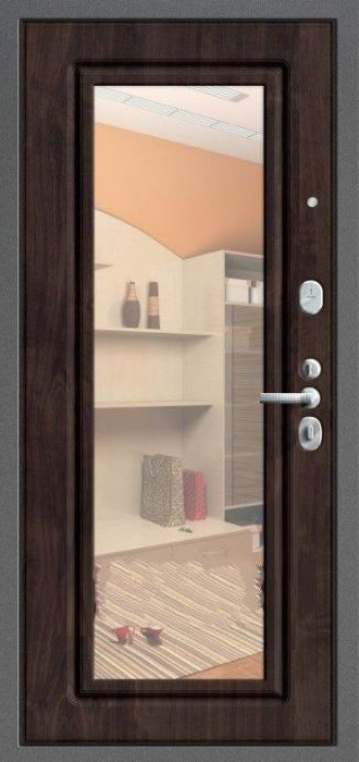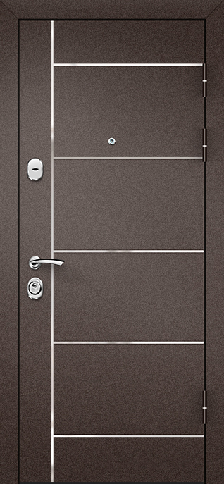 Каркас из профильной трубы и стальной лист толщиной 2 мм обеспечивают прочность конструкции и устойчивость к взлому, а два контура уплотнителей защищают помещение от сквозняков и уличного шума. Входная дверь в квартиру с зеркалом №10 выделяется сочетанием практичного молоткового напыления снаружи и аккуратной плиты МДФ внутри. Такое покрытие не боится механических повреждений и перепадов температуры, долго сохраняя первоначальный вид. Зеркало на внутренней стороне делает прихожую светлее и визуально просторнее, заменяя полноценное настенное. Дополнительные блокираторы и система ребер жёсткости усиливают надежность. Возможность изготовления в любых размерах позволяет адаптировать модель под особенности квартиры, офиса или частного дома, сохранив баланс между эстетикой и безопасностью. Входная дверь в квартиру с зеркалом №10 от производителя: быстрое изготовление и монтаж в Ивантеевке, индивидуальные размеры, широкий выбор материалов и фурнитуры, официальная гарантия до 10 лет.