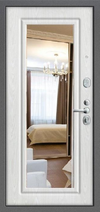 Белый цвет придаёт этой модели лёгкость и универсальность, а зеркало на внутренней стороне делает её особенно удобной для квартир и офисов, где важно сочетать практичность и эстетику. Дверь входная металлическая белая с зеркалом №51 изготовлена на основе прочного стального каркаса с листом металла толщиной 2 мм и усилена рёбрами жёсткости, что обеспечивает надёжность и долговечность. Плиты МДФ во внутренней и внешней отделке устойчивы к повреждениям и сохраняют аккуратный вид даже при интенсивном использовании. Два контура уплотнения помогают удерживать тепло и блокировать сквозняки, а пара замков — сувальдный Просам и цилиндровый Мосрентген — обеспечивают высокий уровень защиты. Зеркальная вставка экономит пространство и визуально расширяет коридор, делая дверь не только защитной, но и функциональной частью интерьера. Дверь входная металлическая белая с зеркалом №51 от производителя: быстрое изготовление и монтаж в Ивантеевке, индивидуальные размеры, широкий выбор материалов и фурнитуры, официальная гарантия до 10 лет.
