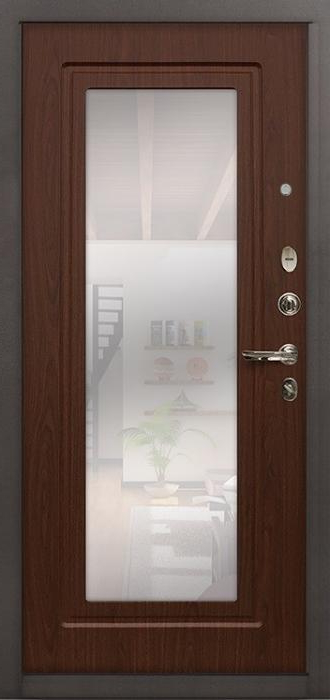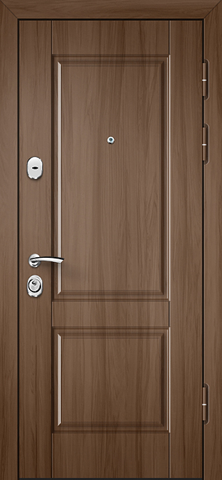 Входная дверь с зеркальными вставками №56 сочетает надежность металлической конструкции и удобство функционального декора. Зеркало не только украшает интерьер, но и делает помещение визуально просторнее, что особенно ценно для квартир и офисов. Для частного дома такая дверь добавляет практичности — всегда можно взглянуть на отражение, выходя на улицу. Отделка выполнена из панелей МДФ с ПВХ-покрытием, устойчивым к царапинам и мелким повреждениям, что обеспечивает долговечность и сохранение первоначального вида. Каркас собран из профильной трубы, усилен рёбрами жёсткости и металлическим листом толщиной 2 мм, благодаря чему дверь выдерживает серьёзные нагрузки и обеспечивает защиту от взлома. Два контура уплотнения препятствуют проникновению сквозняков и пыли, а резиновый уплотнитель сохраняет плотное прилегание полотна. Замковая система включает надежные российские механизмы Просам и Мосрентген, которые отличаются стабильной работой и высоким ресурсом. Дверь №56 — это прочность, удобство и современный дизайн в одной конструкции. Входная дверь с зеркальными вставками №56 от производителя: быстрое изготовление и монтаж в Ивантеевке, индивидуальные размеры, широкий выбор материалов и фурнитуры, официальная гарантия до 10 лет.