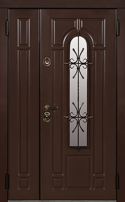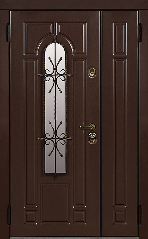 Эта металлическая двухстворчатая дверь с арочным стеклопакетом №15 представляет собой идеальный баланс между эстетикой и прочностью. Арочное стекло добавляет в её дизайн утончённость, а ковка в декоре придаёт изысканный, но в то же время крепкий и надёжный вид. Плита МДФ, используемая как для внешней, так и для внутренней отделки, не только сохраняет прекрасный внешний вид, но и устойчива к механическим повреждениям. Металлическая двухстворчатая дверь с арочным стеклопакетом №15 от производителя: быстрое изготовление и монтаж в Ивантеевке, индивидуальные размеры, широкий выбор материалов и фурнитуры, официальная гарантия до 10 лет.