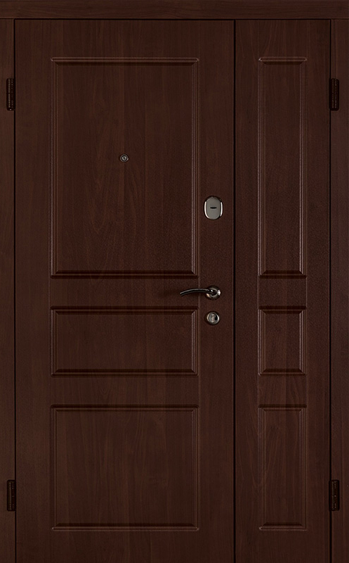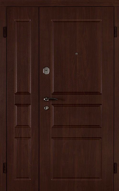 Коричневая входная полуторная дверь с филенчатой створкой №4 – это надежное и стильное решение для вашего дома или офиса. Внешняя и внутренняя отделка из МДФ с ПВХ обеспечивает долговечность и устойчивость к повреждениям, сохраняя при этом элегантный внешний вид. Прочные материалы конструкции, такие как профильная труба 50х25 мм и лист металла толщиной 2 мм, гарантируют стабильность и безопасность. Ребра жесткости из профильных труб 40х25 мм усиливают дверное полотно, а уплотнение с двумя контурами надежно защищает от внешних факторов. Несмотря на отсутствие терморазрыва, в двери реализованы терморазрывы в коробке и полотне, что помогает улучшить теплоизоляцию. Возможность выбора дополнительных опций, таких как шумоизоляция, делает эту дверь универсальной для различных условий эксплуатации. Коричневая входная полуторная дверь с филенчатой створкой №4 от производителя: быстрое изготовление и монтаж в Ивантеевке, индивидуальные размеры, широкий выбор материалов и фурнитуры, официальная гарантия до 10 лет.