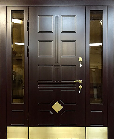 Натуральное дерево в отделке придаёт конструкции основательность и благородный внешний вид, а металлический каркас с листом стали толщиной 2 мм и системой ребер жёсткости обеспечивает надёжную защиту и долговечность. Входная дверь с остеклением №70 особенно востребована в частных домах и коттеджах, где важна не только безопасность, но и эстетика. Стеклянные элементы делают полотно визуально легче и наполняют прихожую естественным светом, при этом оставаясь частью прочной конструкции. Для комфорта предусмотрены два контура уплотнения, а терморазрыв в коробке и полотне защищает от промерзания и сохраняет тепло даже в сильные морозы. Итальянские замки Cisa цилиндрового и сувальдного типа дополняют высокий уровень безопасности. Возможность добавить кованые элементы, зеркало или стеклопакет позволяет адаптировать модель под архитектуру дома, подчёркивая индивидуальность и вкус владельцев. Входная дверь с остеклением №70 от производителя: быстрое изготовление и монтаж в Ивантеевке, индивидуальные размеры, широкий выбор материалов и фурнитуры, официальная гарантия до 10 лет.