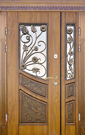 Дверь входная металлическая с стеклом и ковкой для дома №34