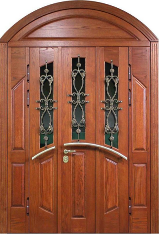 Входная металлическая дверь для частного дома со стеклом и ковкой №29