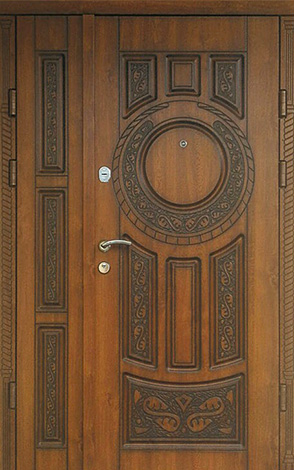 Красивая шпонированная дверь с надежной фурнитурой и ковкой "лоза" №33