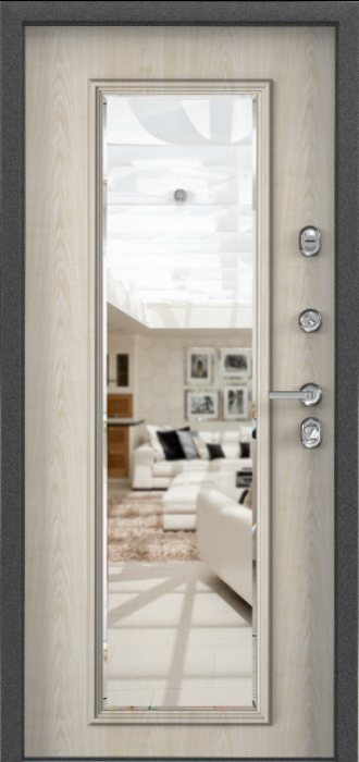 Сочетание прочной конструкции и декоративных решений делает эту модель особенно практичной для частного дома или квартиры. Каркас и полотно выполнены из профильной трубы с листом стали толщиной 2 мм, усиленные рёбрами жёсткости и блокираторами, что обеспечивает высокую надёжность. Два контура резинового уплотнителя препятствуют проникновению влаги и сквозняков, а порошковое напыление на внешней поверхности защищает металл от коррозии и сохраняет аккуратный вид даже при воздействии осадков и солнечного света. Внутренняя отделка панелями МДФ ПВХ создаёт уютный интерьерный акцент и устойчива к повседневным нагрузкам. Дверь входная металлическая уличная в дом №12 дополнена зеркалом, которое делает её не только функциональной, но и более удобной в быту. Для безопасности предусмотрены два замка российского производства — сувальдный Просам и цилиндровый Мосрентген, каждый с тремя ригелями. Дополнительно дверь можно оснастить стеклопакетом или коваными элементами, превратив её в индивидуальное решение для конкретных задач. Дверь входная металлическая уличная в дом №12 от производителя: быстрое изготовление и монтаж в Ивантеевке, индивидуальные размеры, широкий выбор материалов и фурнитуры, официальная гарантия до 10 лет.